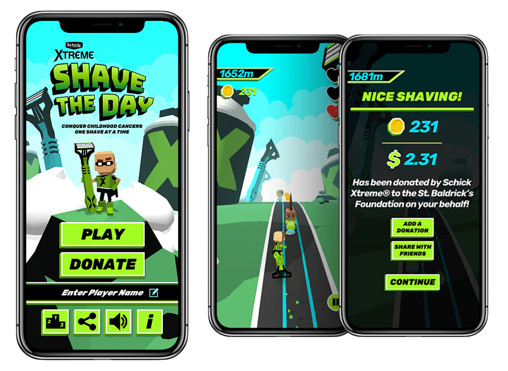 We built Shave The Day, a mobile game that raises money for children’s cancer research through the St. Baldrick’s Foundation and extends the Schick Xtreme brand.